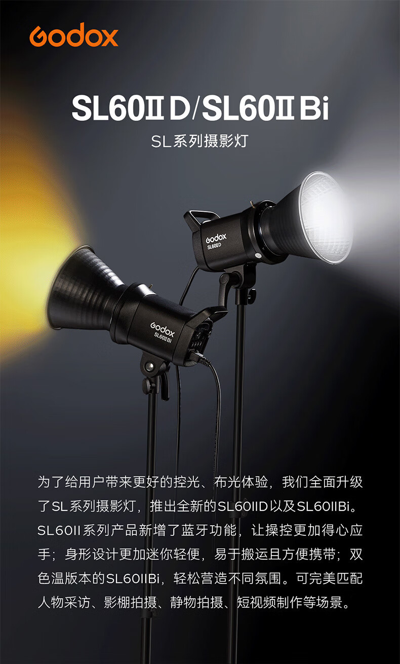 神牛Godox补光灯SL60W摄影灯LED太阳灯摄影棚拍照聚 光灯直播间